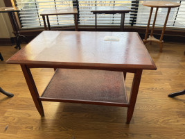 #457 — SEWING TABLE W/SINGER SLANT-O-MATIC SEWING MACHINE, BENCH & STORAGE CABINET