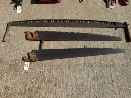 # 106 — TWO MAN CROSS CUT SAW W/HANDLES, (2) ONE MAN CROSS CUT SAW