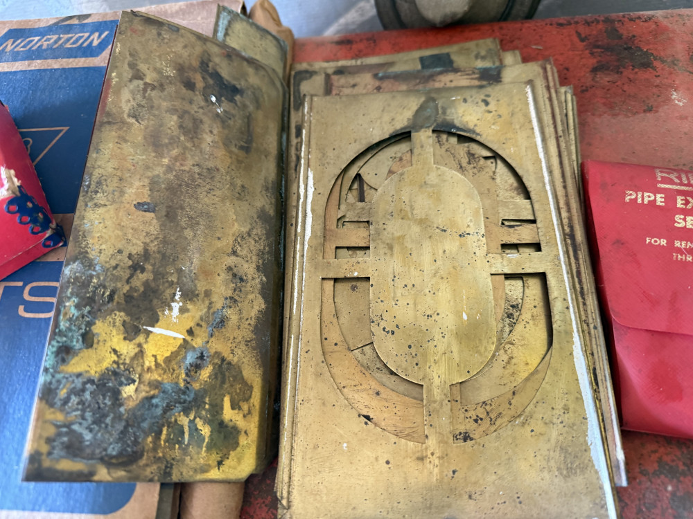 BRASS STENCIL SET, LEATHER PUNCHES, PIPE EXTRACTORS, ABRASIVE SHEETS (#16) KENNETH BILLBE DOWNSIZING, HENRYETTA, OK