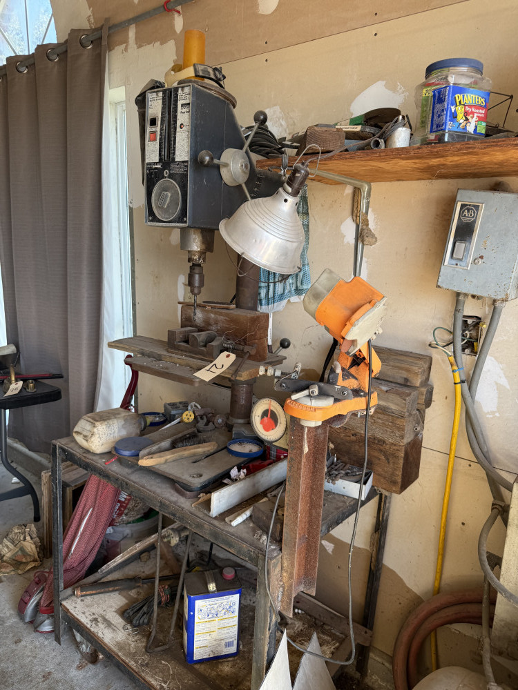 MONTGOMERY WARD DRILL PRESS (WORKS), W/TABLE AND CONTENTS (#21) KENNETH BILLBE DOWNSIZING, HENRYETTA, OK