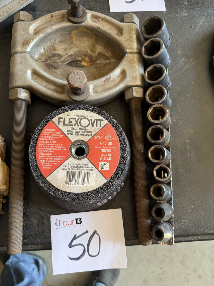 6" X 2" GRINDING WHEEL, IMPACT SOCKETS, BEARING SPLITTER (#50) KENNETH BILLBE DOWNSIZING, HENRYETTA, OK
