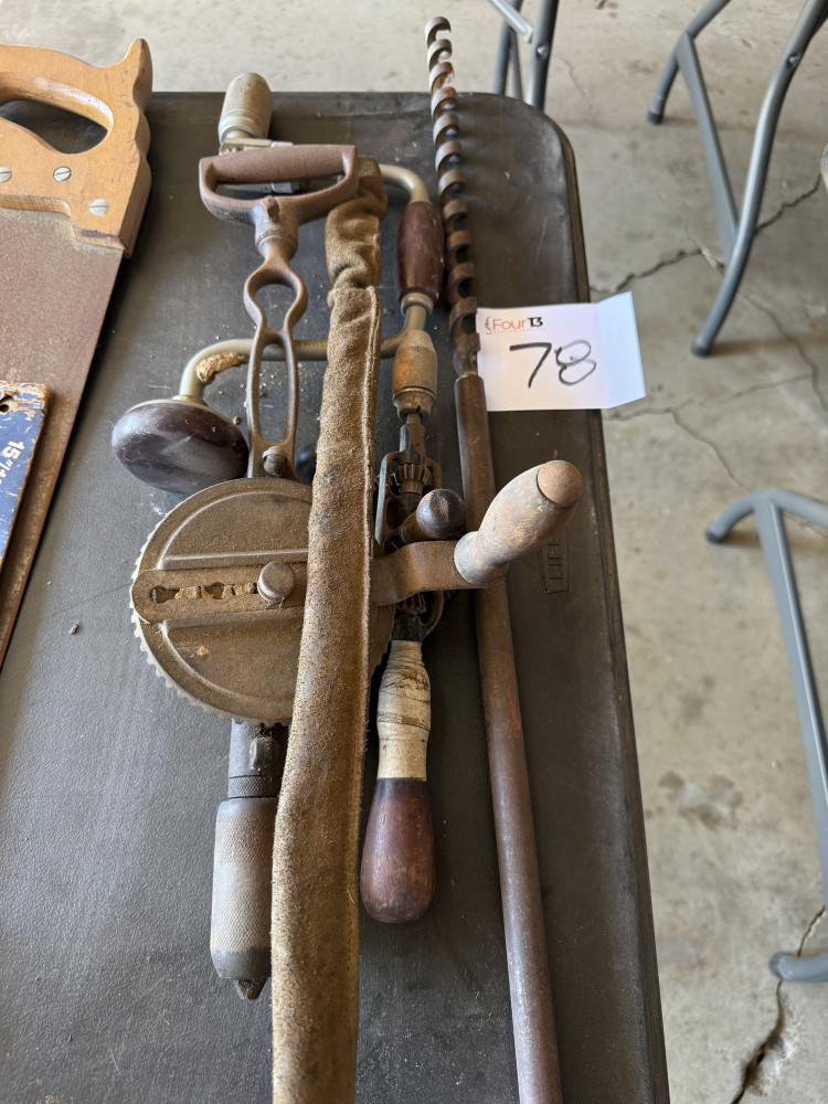 VINTAGE BRACE N BITS, BITS, HAND DRILL (#78) KENNETH BILLBE DOWNSIZING, HENRYETTA, OK