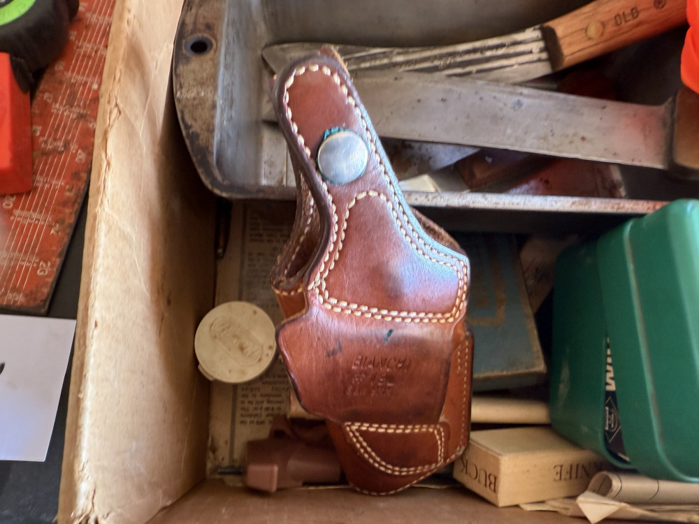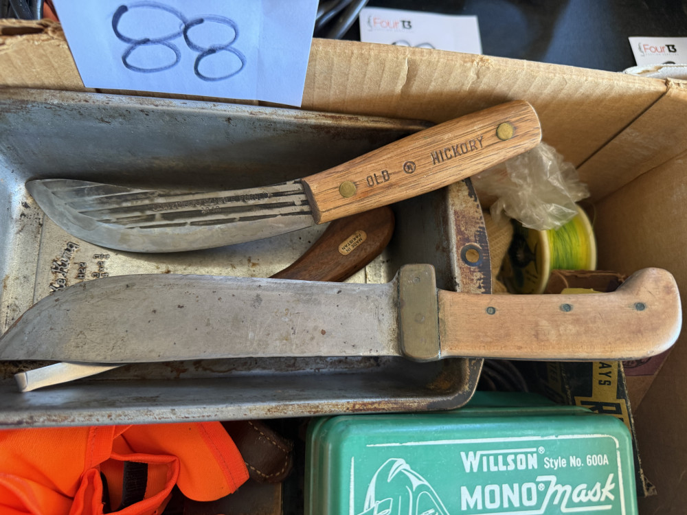 OLD HICKORY KNIFE,HANDMADE KNIFE, HOOF KNIFE,LEATHER HAND GUN HOLSTER, MISC (#88) KENNETH BILLBE DOWNSIZING, HENRYETTA, OK