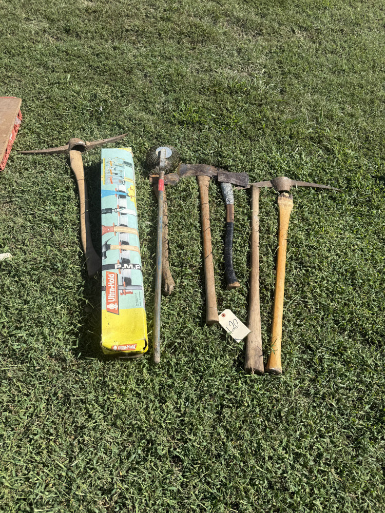 PICKS, AXES, TOOL RACK (#120) KENNETH BILLBE DOWNSIZING, HENRYETTA, OK