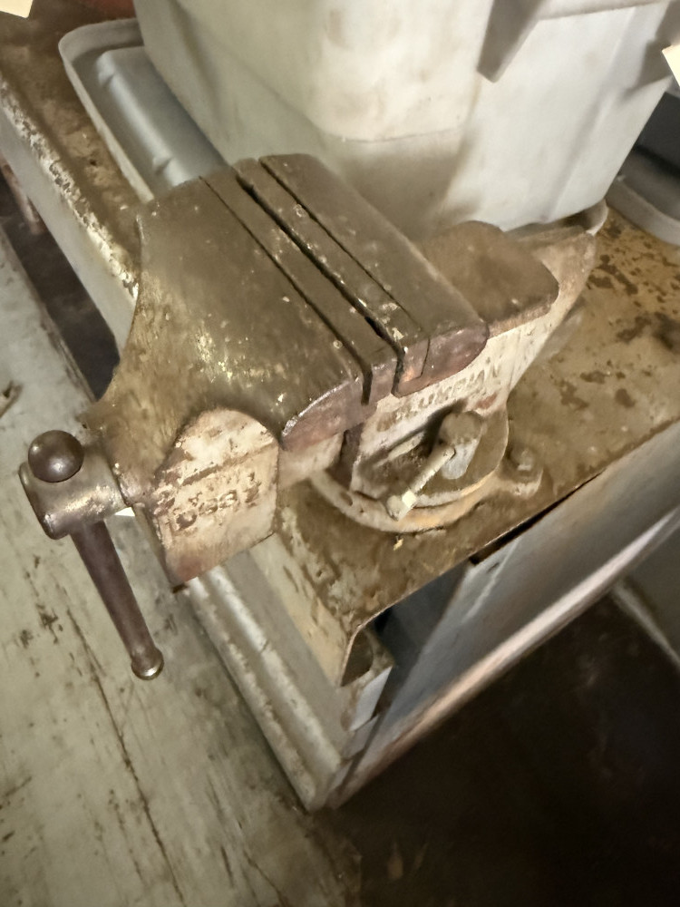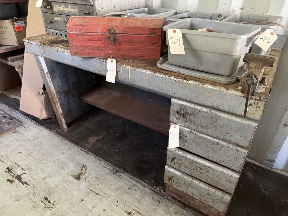 METAL SHOP DESK W/MOUNTED VISE (#204) KENNETH BILLBE DOWNSIZING, HENRYETTA, OK