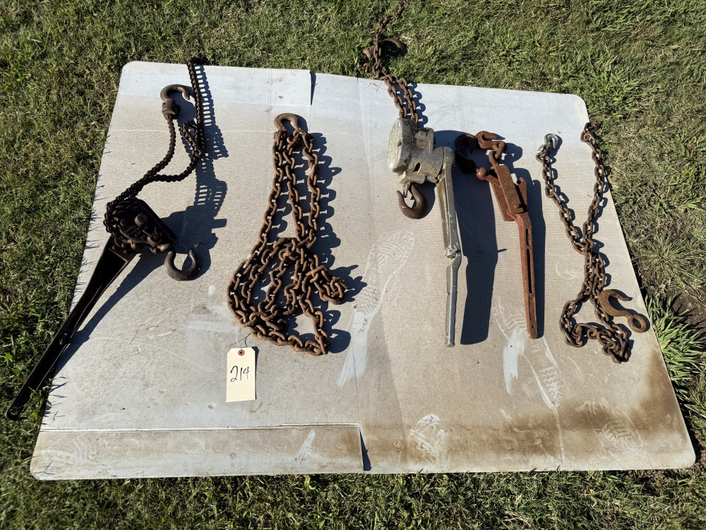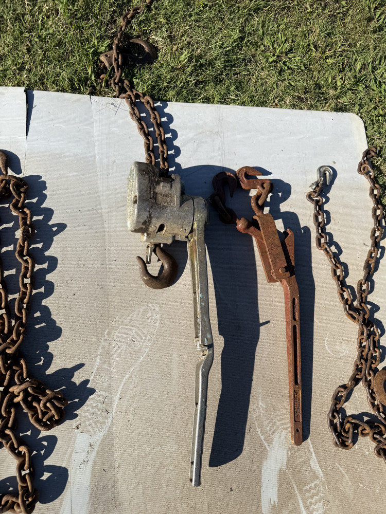 LOG CHAINS,(2)CHAIN LEVER HOIST, CHAIN BOOMER (#214) KENNETH BILLBE DOWNSIZING, HENRYETTA, OK