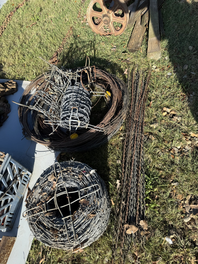 BARBED WIRE, HEAVY GUAGE WIRE, FENCE STAYS (#289) KENNETH BILLBE DOWNSIZING, HENRYETTA, OK