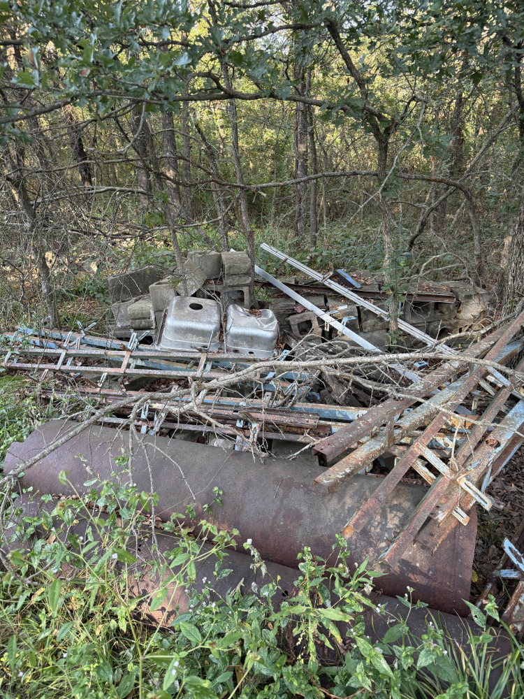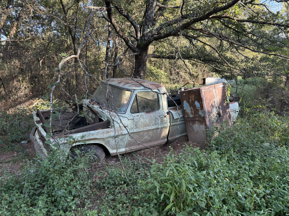 FORD PICK UP, 2 MOTORS IN BED, SCRAP PILE (#357) KENNETH BILLBE DOWNSIZING, HENRYETTA, OK