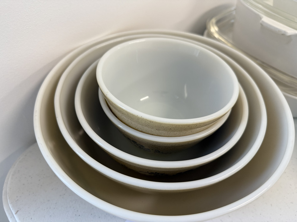 PYREX HOMESTEAD NESTING MIXING BOWLS (#16) JACK & BARBARA CHAPMAN ESTATE, COOKSON OK