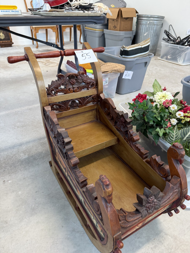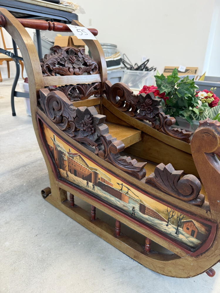 ANTIQUE GERMAN WOODEN CARVED SLEIGH (#55) JACK & BARBARA CHAPMAN ESTATE, COOKSON OK