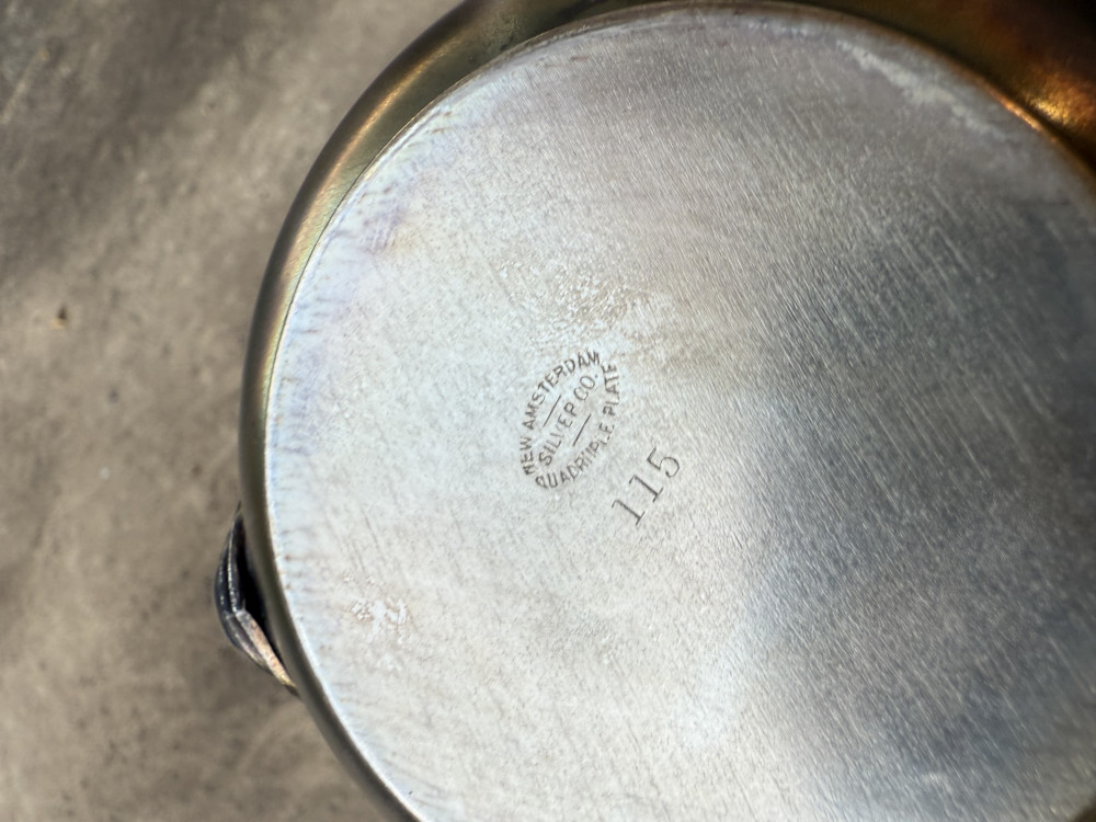 NEW AMSTERDAM QUADRUPLE PLATE DOMED BUTTER/CHEESE DISH, TEA POT, CUP (#76) JACK & BARBARA CHAPMAN ESTATE, COOKSON OK