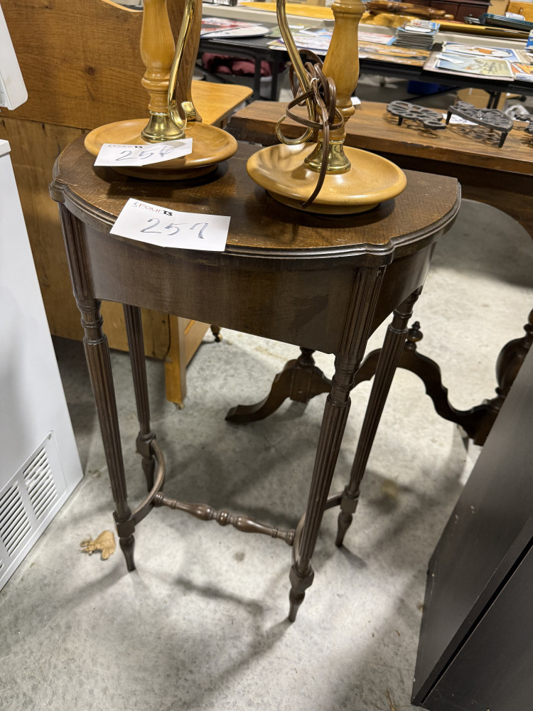 WOODEN HALF MOON TABLE (#257) JACK & BARBARA CHAPMAN ESTATE, COOKSON OK