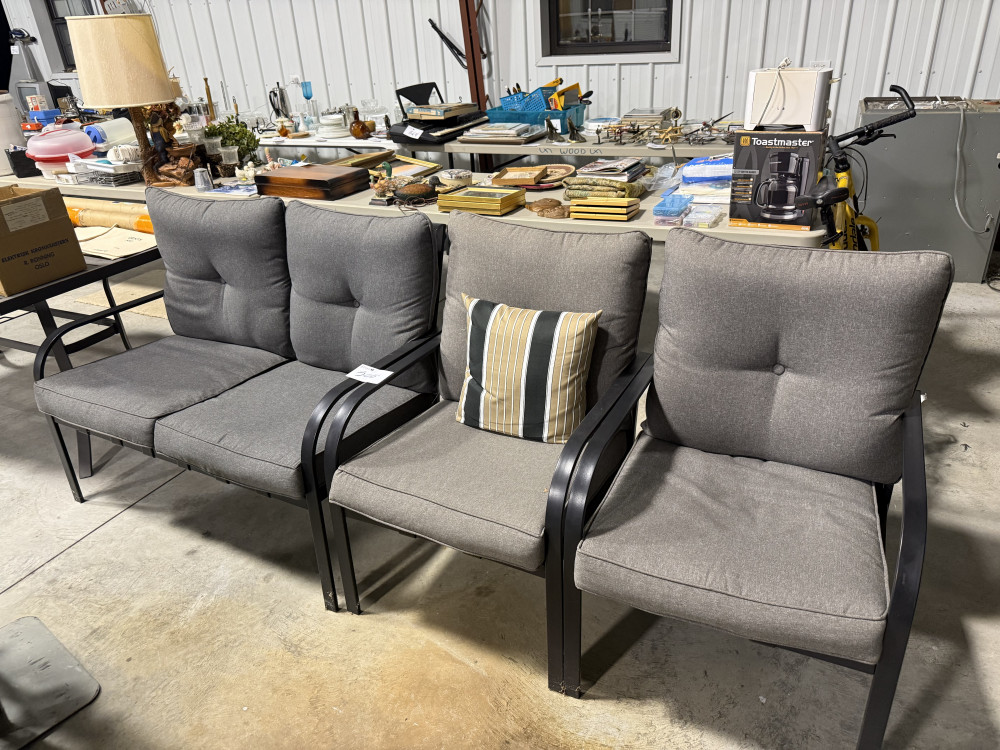 OUTDOOR TABLE W/2 CHAIRS AND DOUBLE SEAT (#305) JACK & BARBARA CHAPMAN ESTATE, COOKSON OK