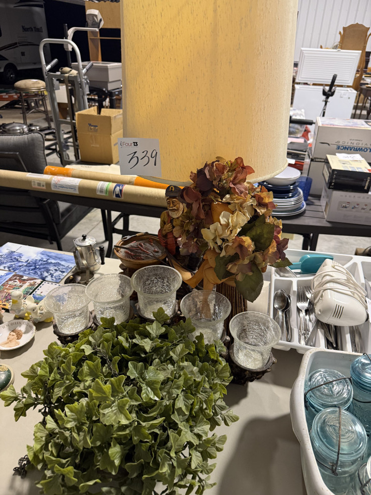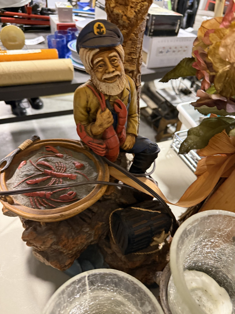 LOBSTER FISHERMAN LAMP, CANDLE HOLDER, FLORAL HANGING BASKET (#339) JACK & BARBARA CHAPMAN ESTATE, COOKSON OK