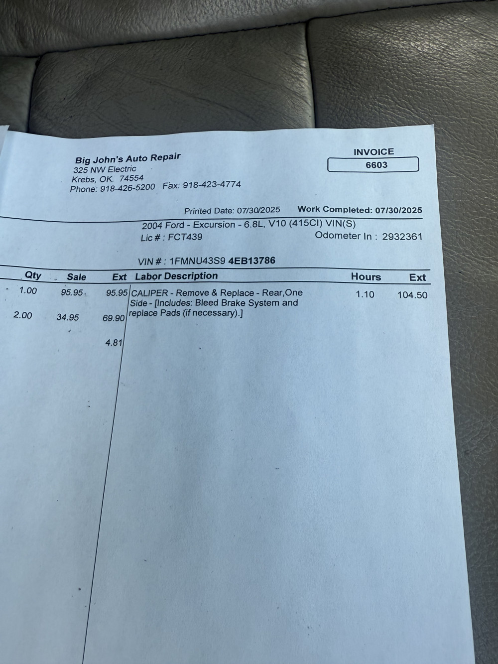 2004 FORD EXCURSION 293,392 MILES (#D) TAYLOR DOWNSIZING ONLINE AUCTION PART 1