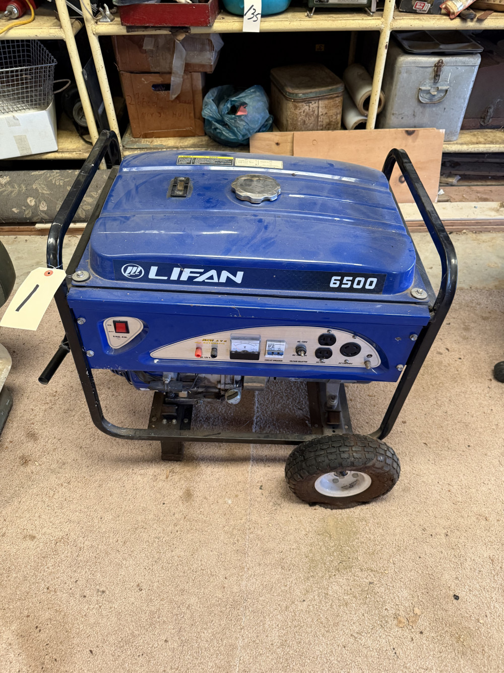 LIFAN 6500 WATT GENERATOR (#1) TAYLOR DOWNSIZING ONLINE AUCTION PART 1