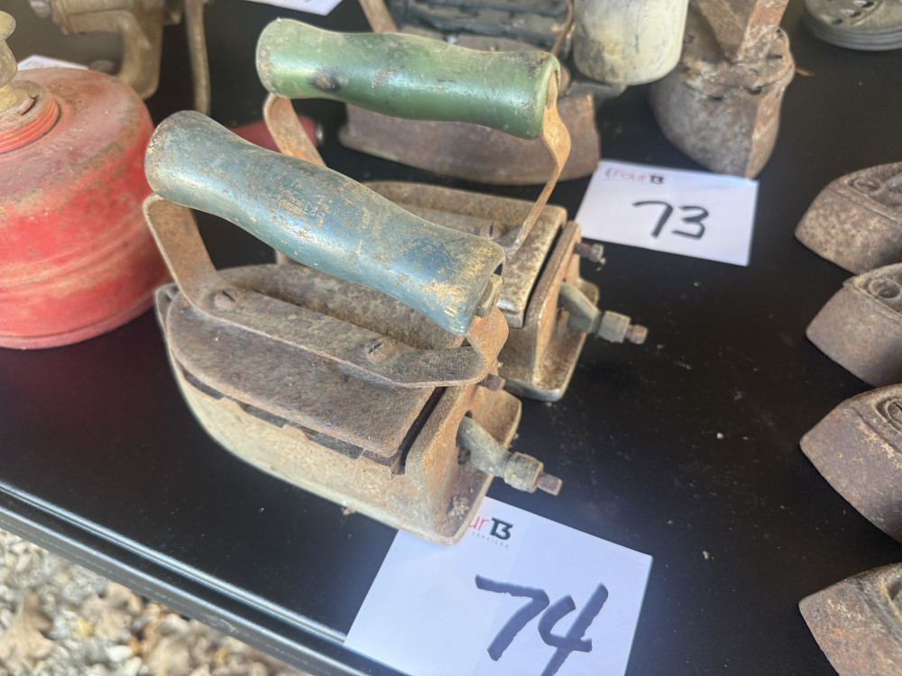 ANTIQUE CHARCOAL IRONS (#74) TAYLOR DOWNSIZING ONLINE AUCTION PART 1