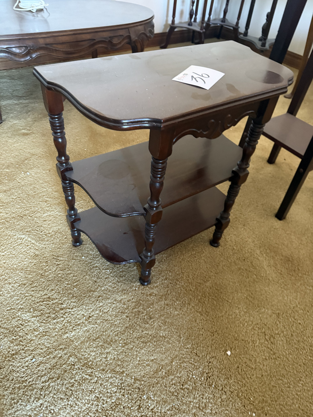 SMALL THREE SHELF TABLE (#36) JOANN EDWARDS ESTATE, ROLAND OK
