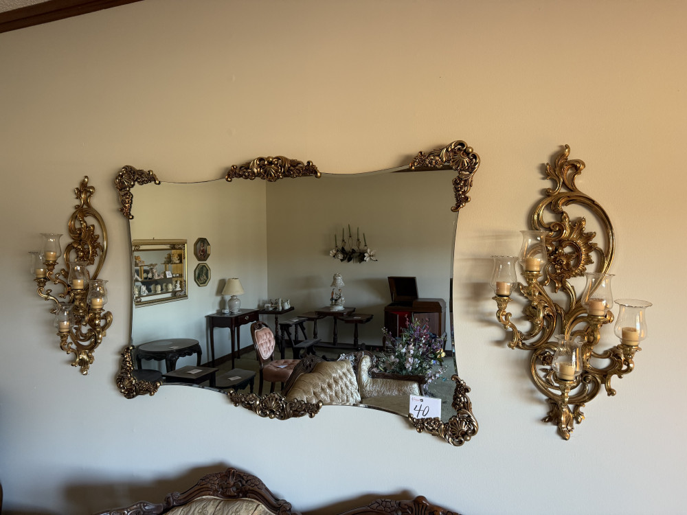 LARGE WALL MIRROR WITH CANDLE SCONCES SIDE PIECES (#40) JOANN EDWARDS ESTATE, ROLAND OK