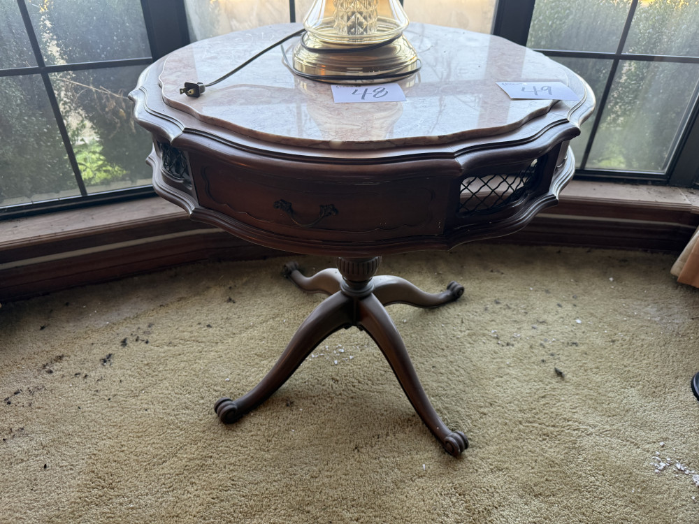 ROUND MARBLE TOP TABLE (#49) JOANN EDWARDS ESTATE, ROLAND OK
