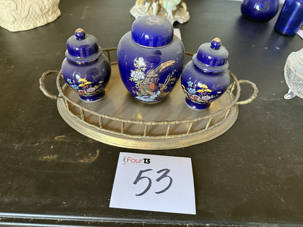 ORIENTAL URNS WITH BRASS BASE (#53) JOANN EDWARDS ESTATE, ROLAND OK