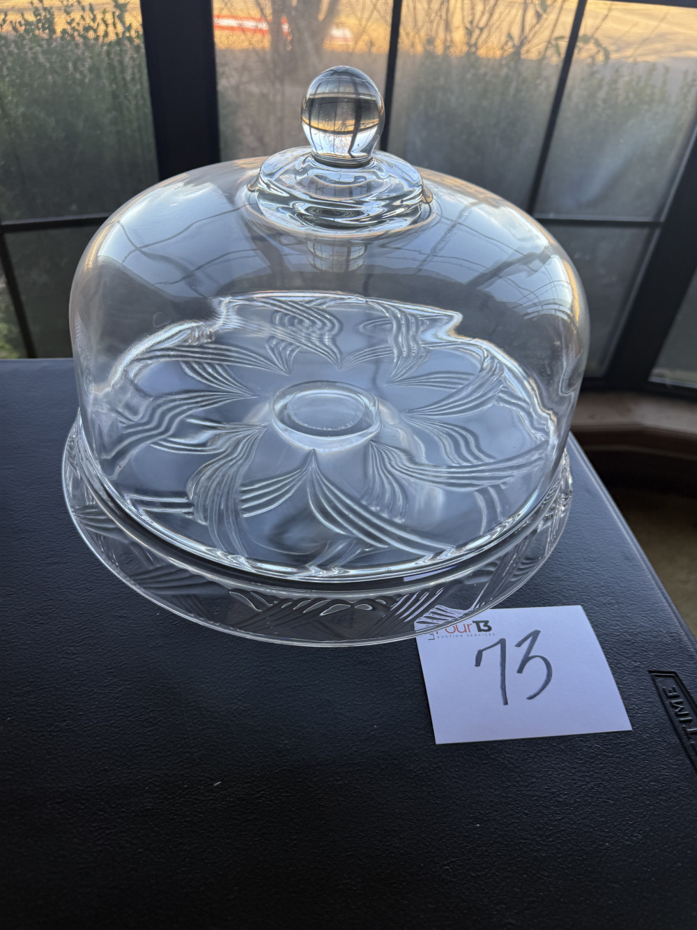 CRYSTAL CAKE SERVER (#73) JOANN EDWARDS ESTATE, ROLAND OK