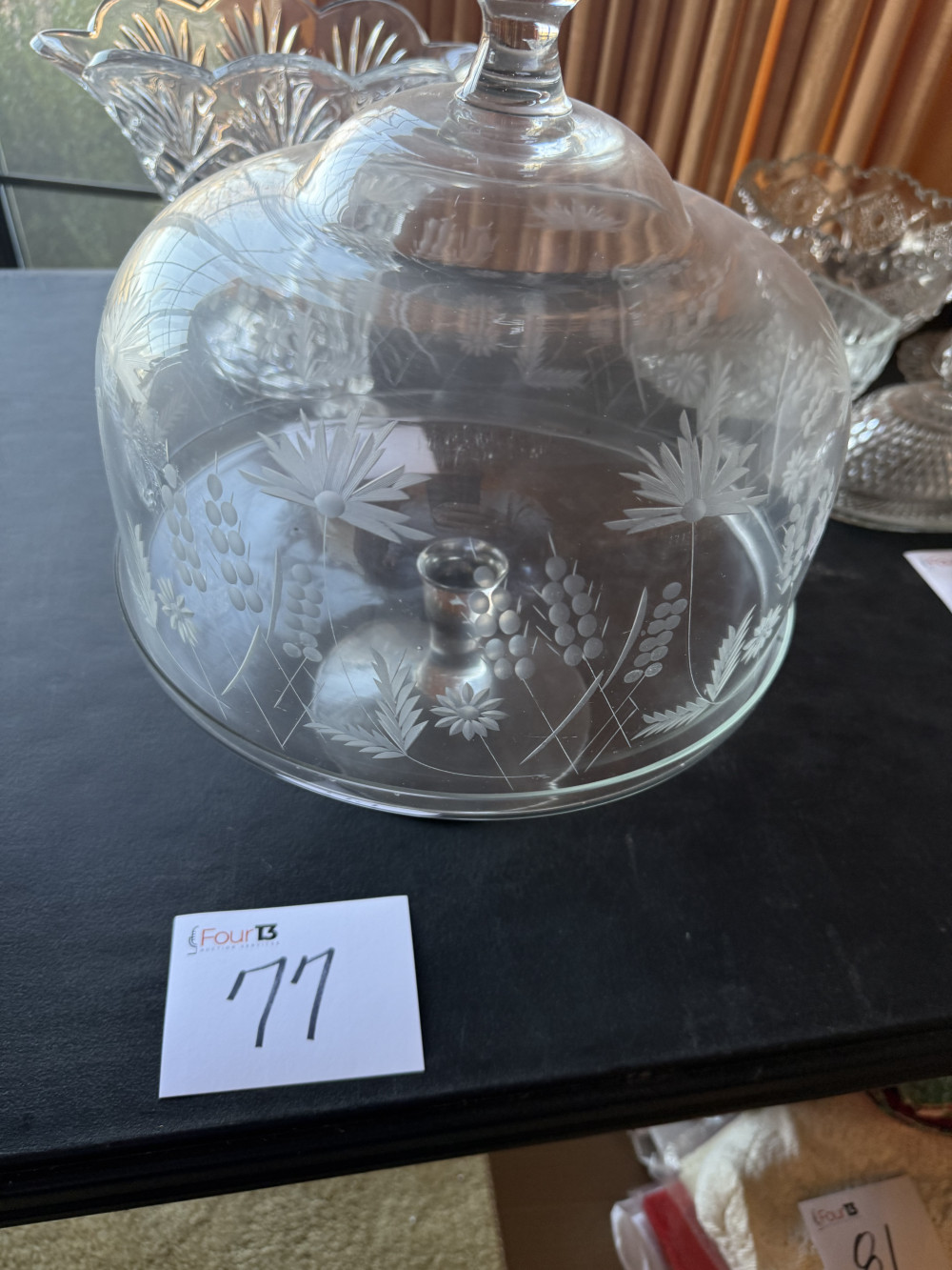 ETCHED CRYSTAL CAKE SERVER (#77) JOANN EDWARDS ESTATE, ROLAND OK