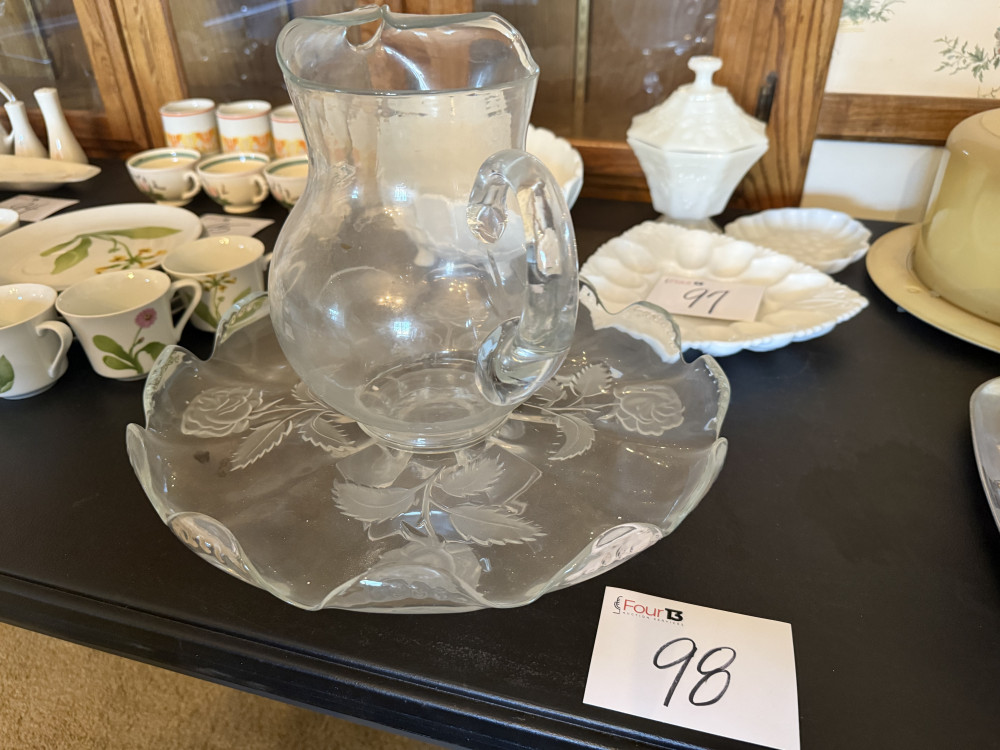 LOBED/OPTICAL PITCHER AND CONSOLE BOWL (#98) JOANN EDWARDS ESTATE, ROLAND OK