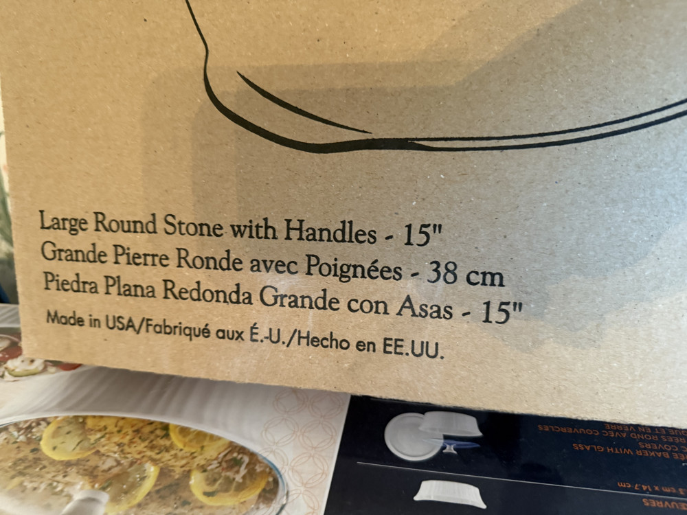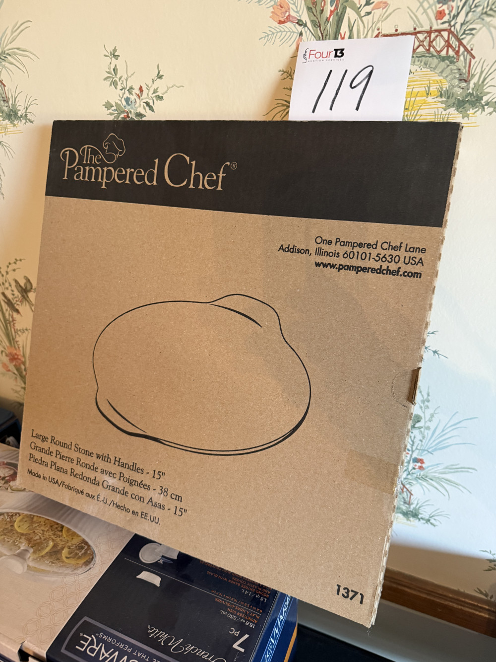 PAMPERED CHEF LARGE ROUND STONE W/HANDLES (#119) JOANN EDWARDS ESTATE, ROLAND OK