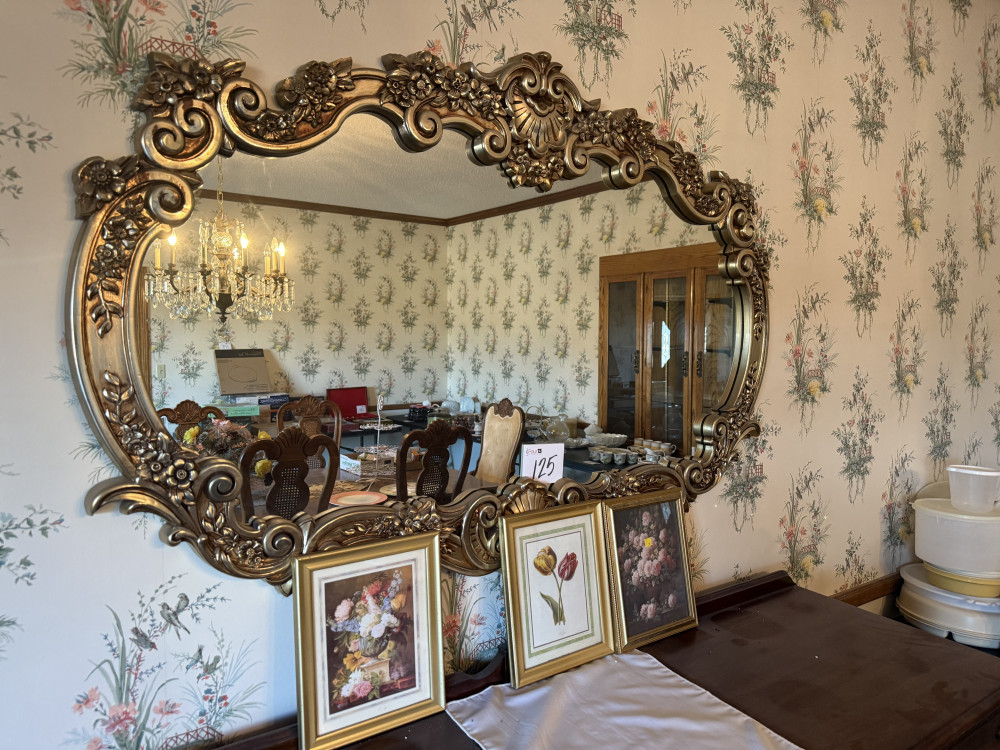 LARGE ORNATE MIRROR AND FRAMED ART (#125) JOANN EDWARDS ESTATE, ROLAND OK