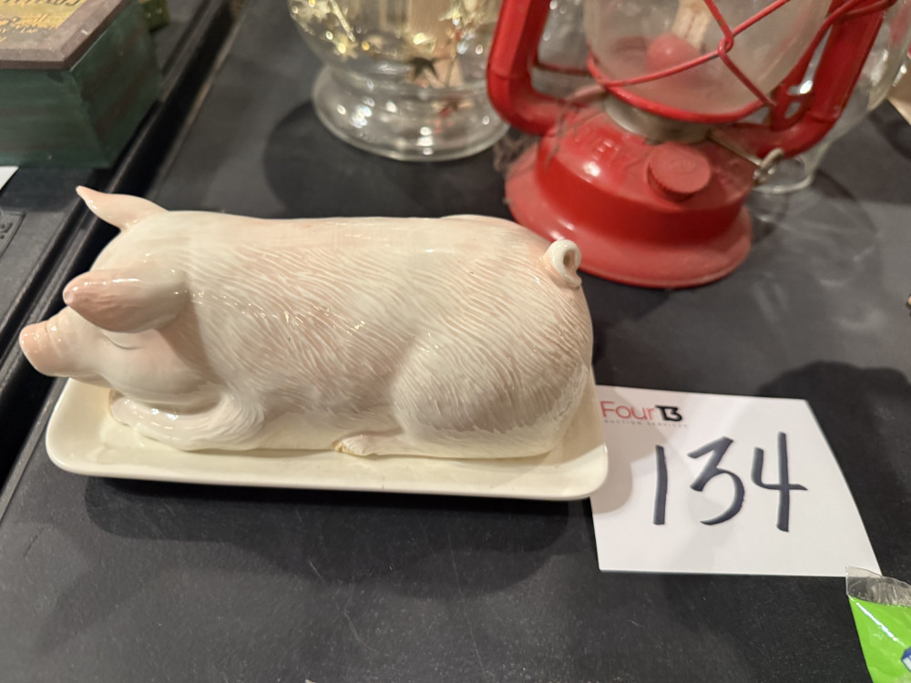 SLEEPING PIG BUTTER DISH (#134) JOANN EDWARDS ESTATE, ROLAND OK