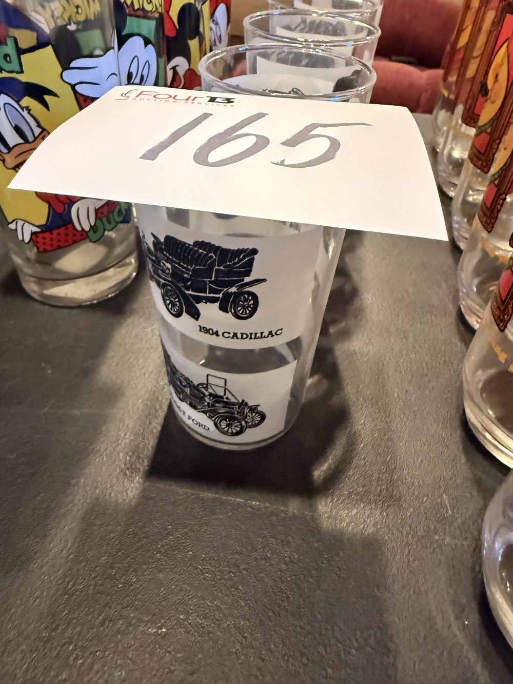 ANCHOR HOCKING 1904 CADILLAC AND 1906-08 FORD DRINKING GLASSES (#165) JOANN EDWARDS ESTATE, ROLAND OK