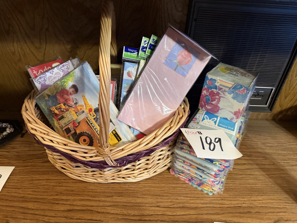 BASKET OF NOTE PADS, GREETING CARDS (#189) JOANN EDWARDS ESTATE, ROLAND OK