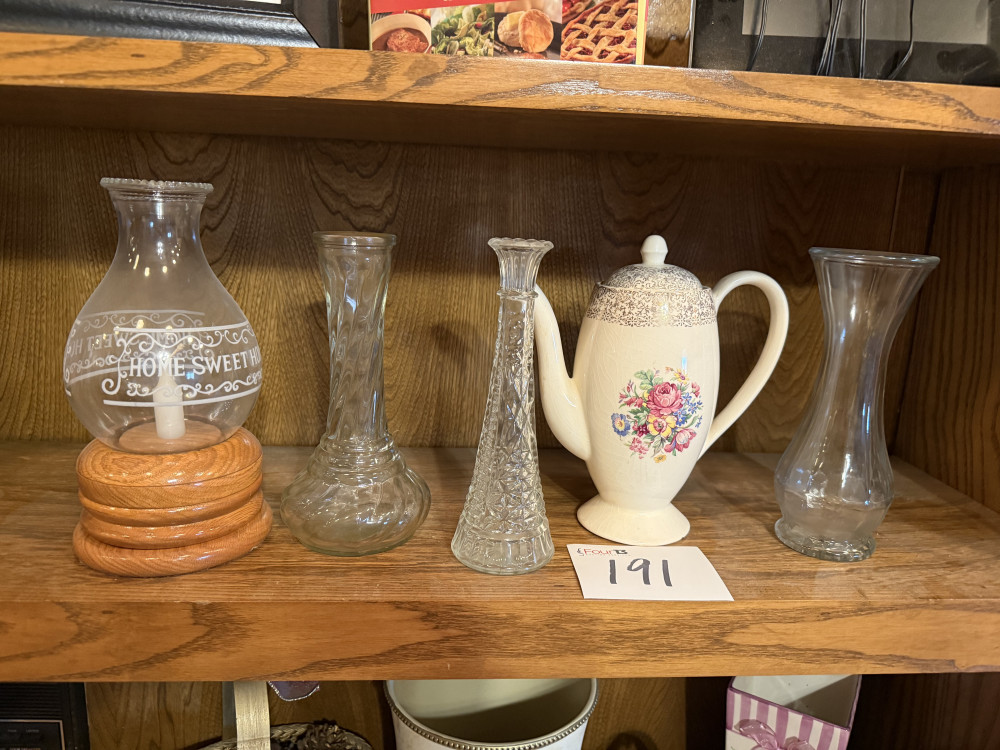 CRONIN CHINA EVERBRITE FLOWERS &22KT GOLD COFFEE POT, MISC VASES (#191) JOANN EDWARDS ESTATE, ROLAND OK