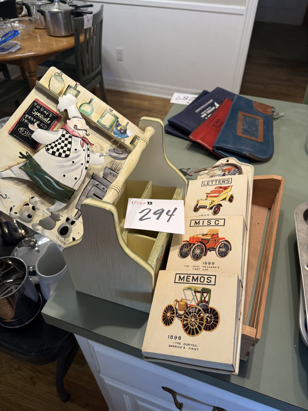 METAL LETTER ORGANIZER, WOODEN TOOL BOX (#294) JOANN EDWARDS ESTATE, ROLAND OK