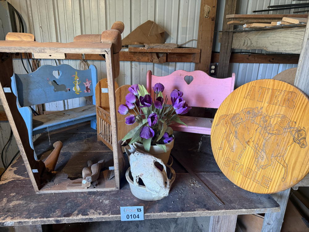WOODEN SIGN, BENCHES, MISC (#104) MARILYN ATER LIVING ESTATE (PART 1 OUTDOOR)