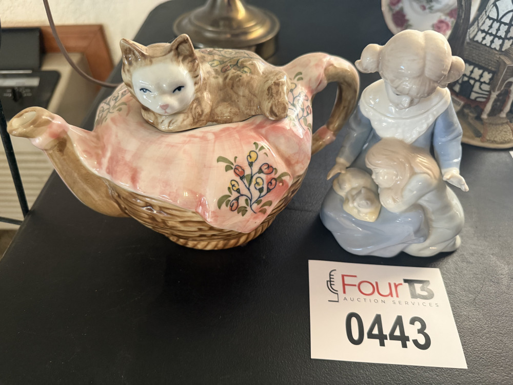 PORCELAIN CAT TEAPOT, "LITTLE SISTER" PORCELAIN FIGURINE (#443) MARILYN ATER LIVING ESTATE (PART 2 INDOOR)