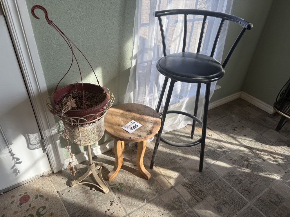 BAR STOOL, TABLE, PLANTER (#965) JOANN EDWARDS ESTATE PART 2, ROLAND OK