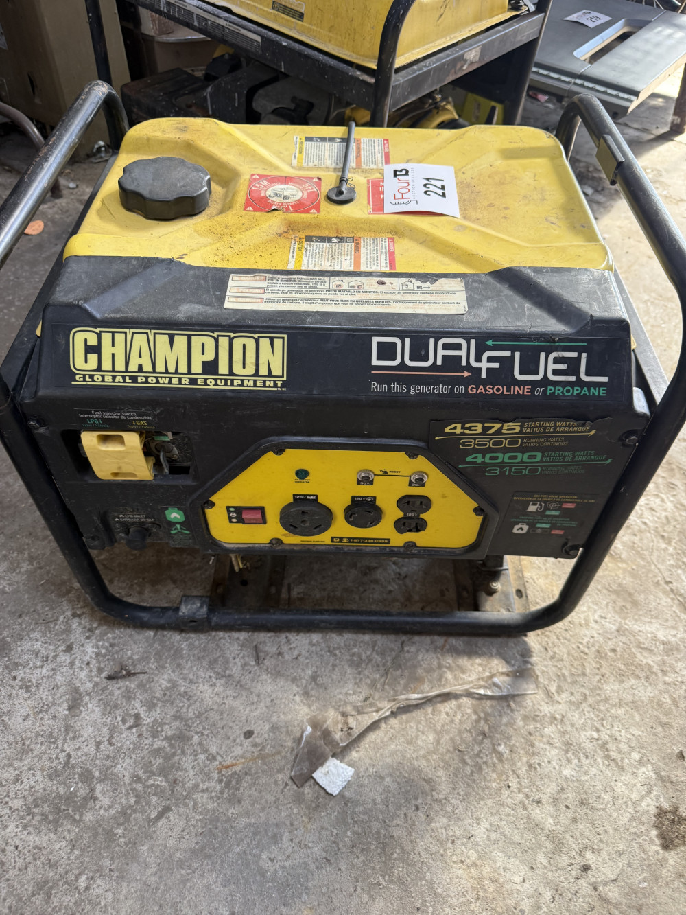CHAMPION DUAL FUEL GENERATOR (#221) WAREHOUSE TOOL ONLINE AUCTION, SALLISAW OK