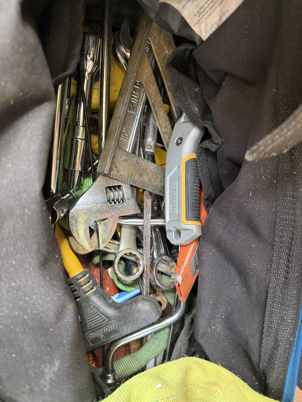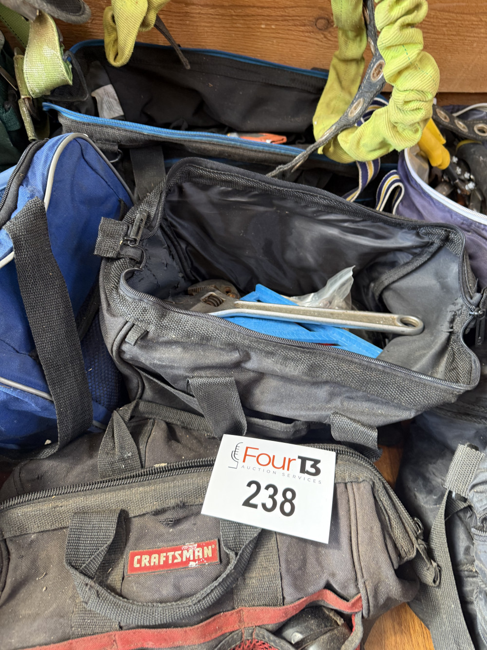 (3) TOOL BAGS WITH TOOLS (#238) WAREHOUSE TOOL ONLINE AUCTION, SALLISAW OK