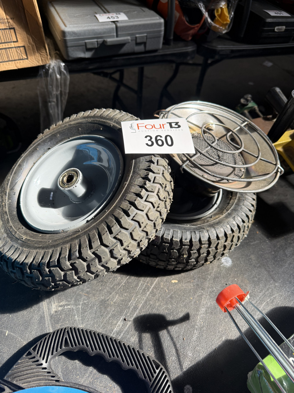 PROPANE BOTTLE HEATER, TWO RIMS AND TIRE TIRES (#360) WAREHOUSE TOOL ONLINE AUCTION, SALLISAW OK
