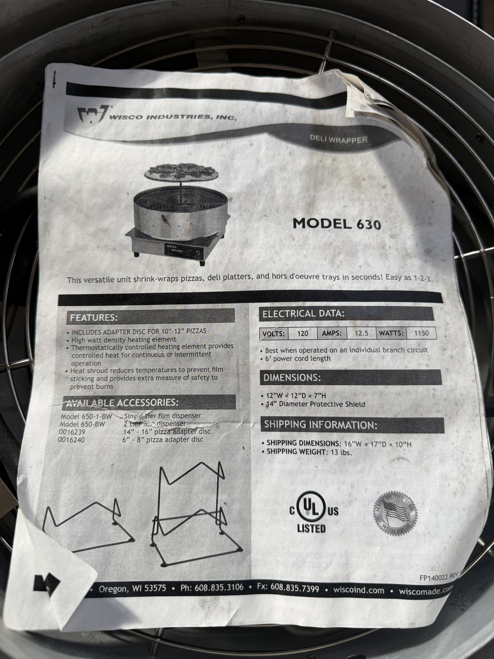 WISCO DELI WRAPPER (#548) WAREHOUSE TOOL ONLINE AUCTION, SALLISAW OK