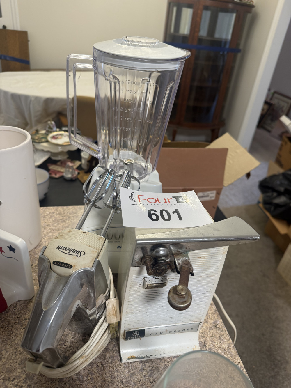 BLENDER, VINTAGE CAN OPENER AND BLENDER (#601) JONES FAMILY ESTATE #1 SALLISAW OK