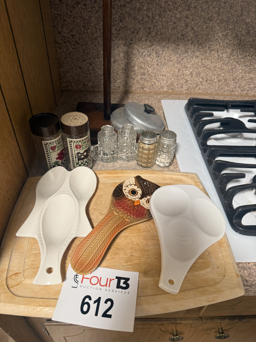 SPOON RESTS, CUTTING BOARD, S&P SHAKERS (#612) JONES FAMILY ESTATE #1 SALLISAW OK