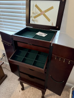 MAHOGANY QUEEN ANNE STYLE JEWELRY ARMOIRE (BRAND NEW) (#647) JONES FAMILY ESTATE #1 SALLISAW OK