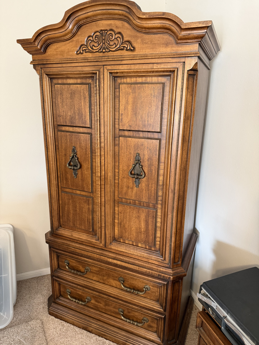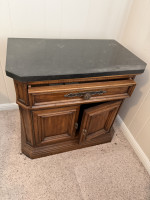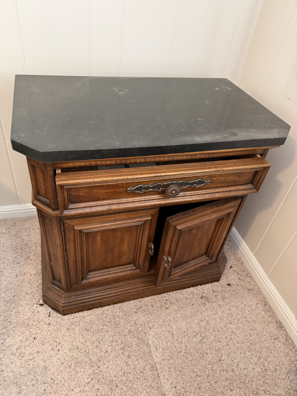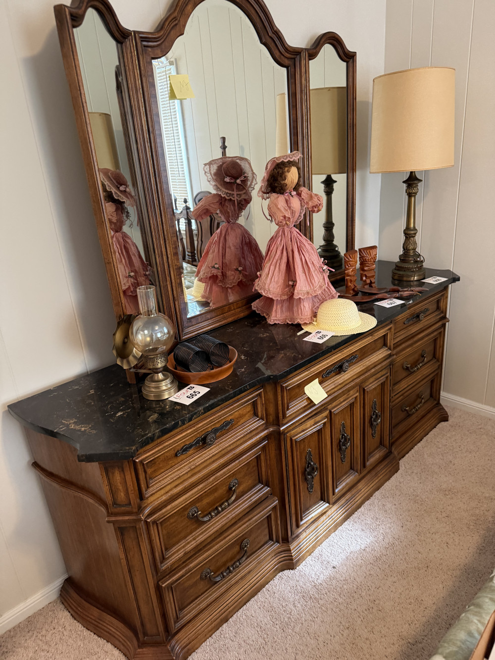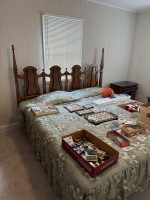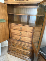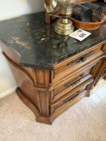 KING SIZE BEDROOM SUIT (BED, MARBLE TOP DRESSER/TRI-FOLD MIRROR, (2) MARBLE TOP NIGHT STANDS, ARMOIRE) (#680) JONES FAMILY ESTATE #1 SALLISAW OK