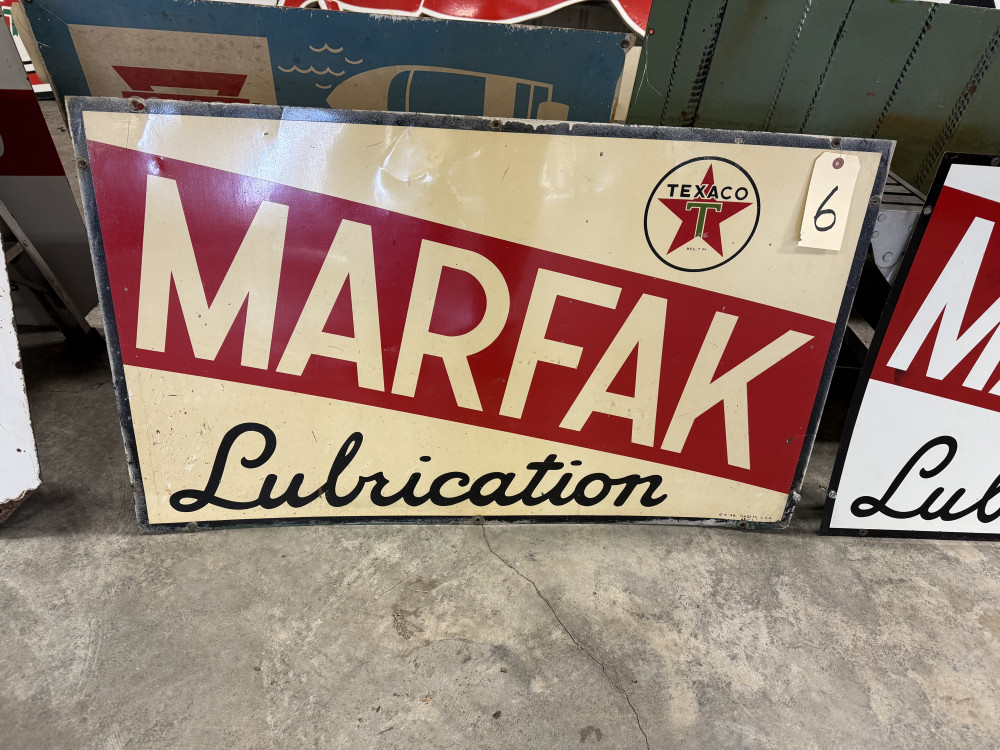 40" X 24" SINGLE SIDED MARFAK LUBRICATION TIN SIGN (#6) STEVE CONRAD ESTATE AUCTION, GORE OK