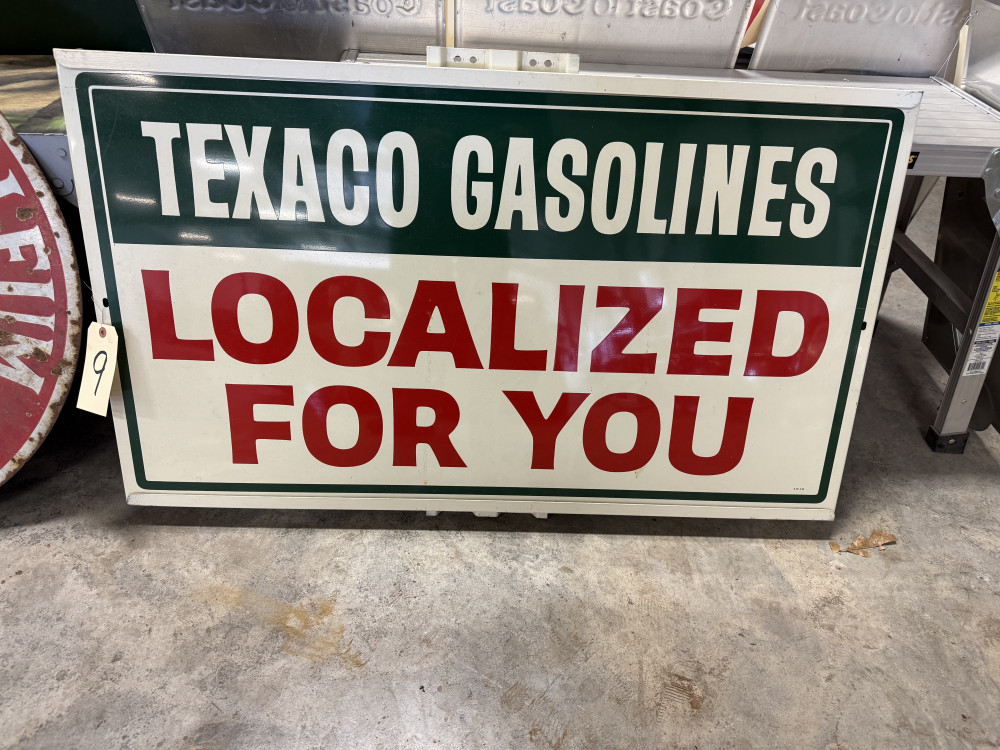 42" X 29 1/2" SINGLE SIDED "LOCALIZED FOR YOU" TEXACO GASOLINES TIN SIGN (#9) STEVE CONRAD ESTATE AUCTION, GORE OK