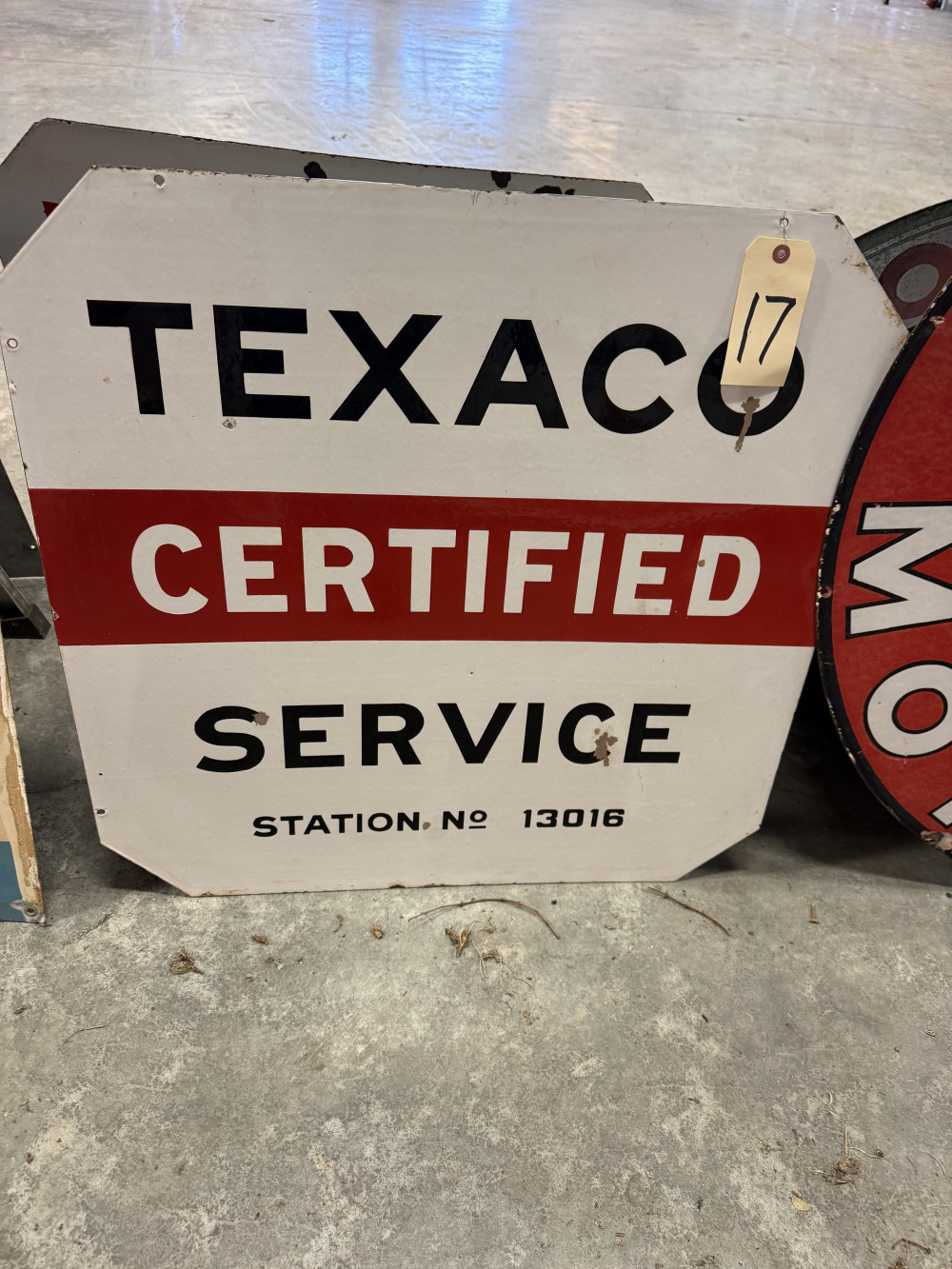 30"X 30" DOUBLE SIDED TEXACO "CERTIFIED SERVICE" STATION NO. 13016 PORCELAIN SIGN (#17) STEVE CONRAD ESTATE AUCTION, GORE OK