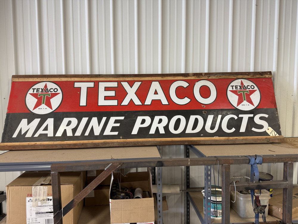 96" X 25 1/2" SINGLE SIDED TEXACO MARINE PRODUCTS PORCELAIN SIGN (#22) STEVE CONRAD ESTATE AUCTION, GORE OK